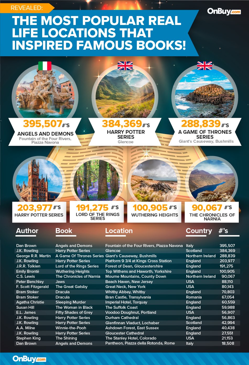 A league table drawn up by online retailer OnBuy.com found that the second most popular real-life book inspired location is Scotland’s Glencoe, with 384,369 Instagram hashtags.