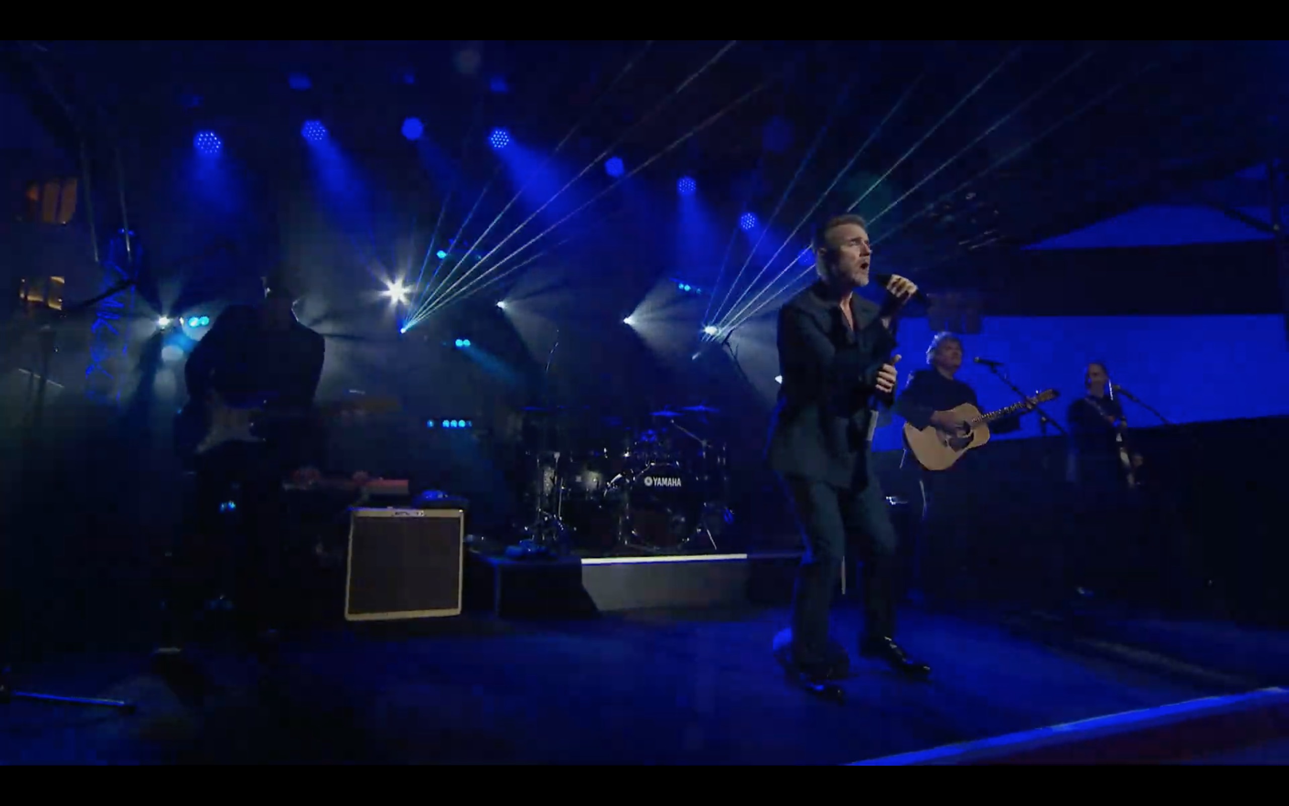 Playing live for a virtual audience of VIPs, he belted out his band’s iconic Greatest Day and Rule The World as Iona was christened.