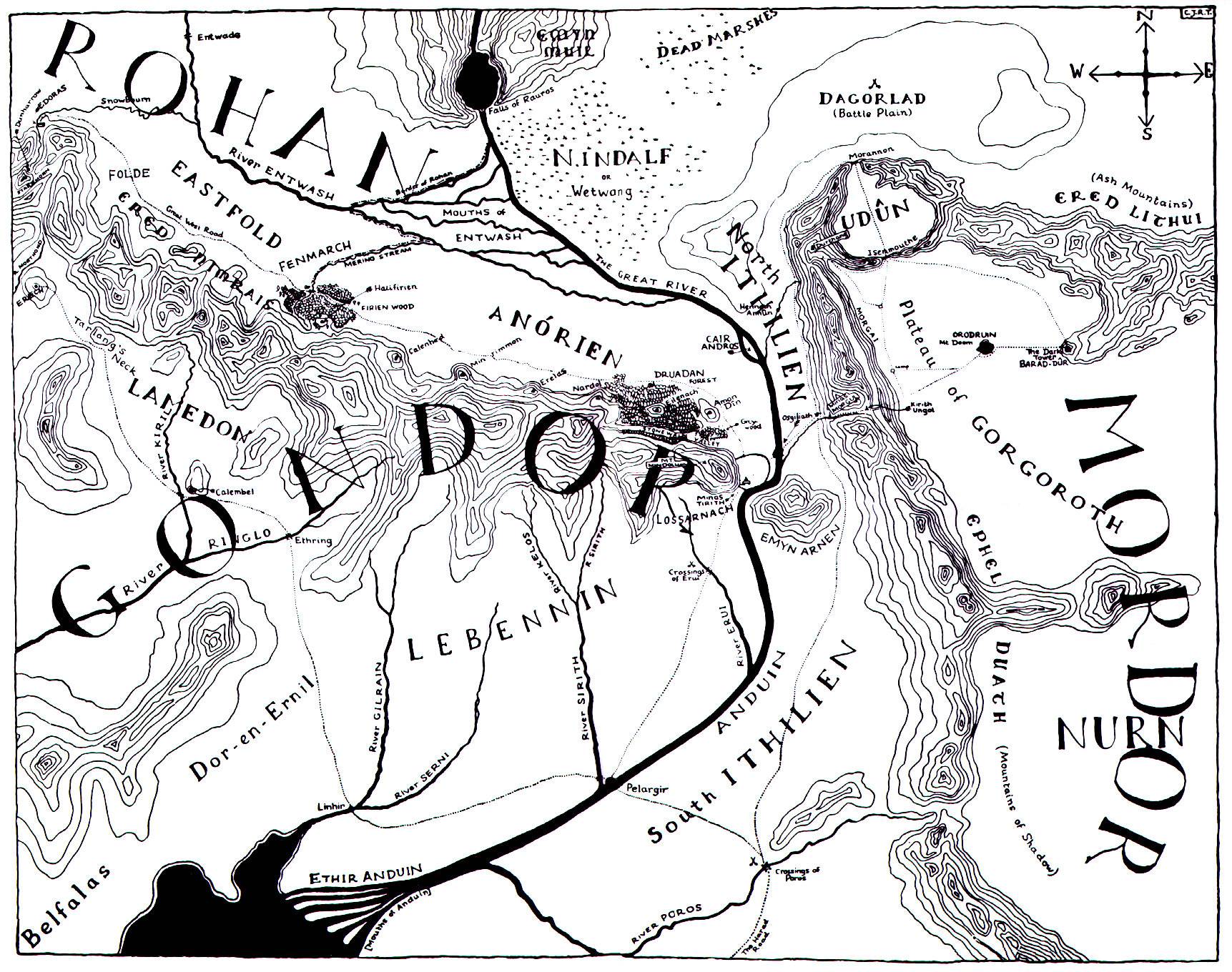 And here it is in Middle-Earth, marked ‘Nindalf or Wetwang’, from the maps that illustrated Tolkien’s fantasy masterworks.