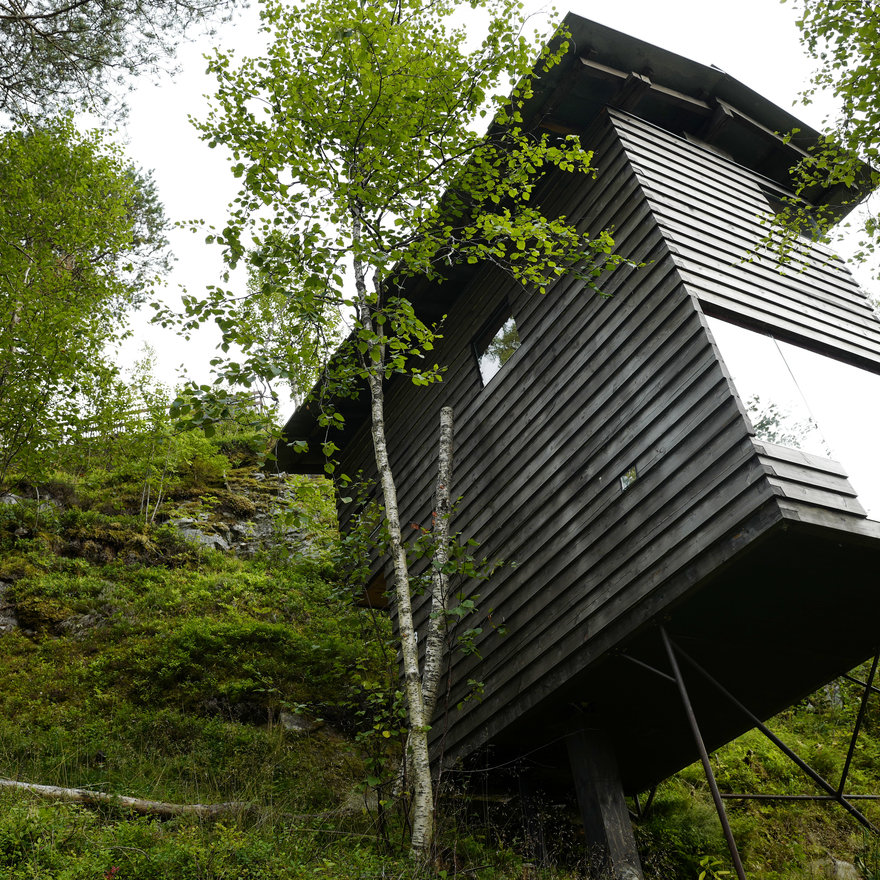 Rather than build a large hotel, architects Jensen & Skodvin designed a destination made up of smaller self-contained cabins with floor-to-ceiling windows dotted through the site, and central facilities including public rooms, a restaurant and sauna spa.