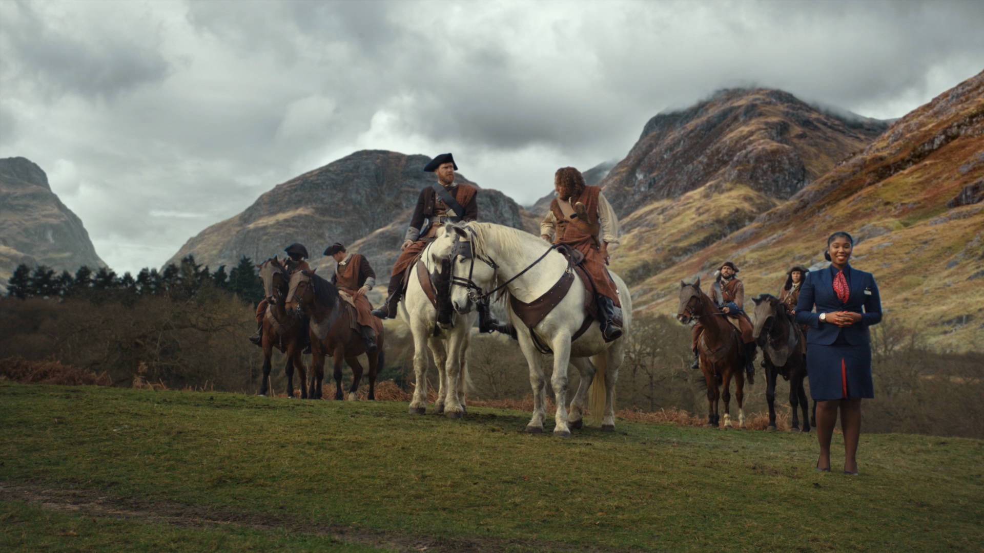 The five-minute film depicts ladies and lords of the manor, as well as housekeepers and butlers, going about their everyday lives before being abruptly interrupted by present-day BA staff.