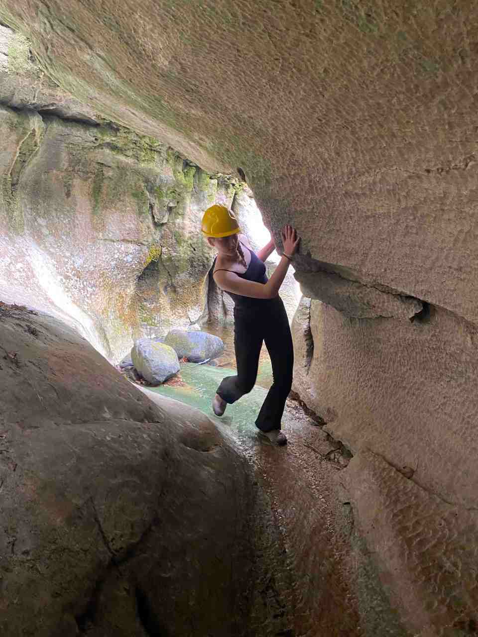 ‘Caves How Stean Gorge Tunnel Entrance with Zahra’